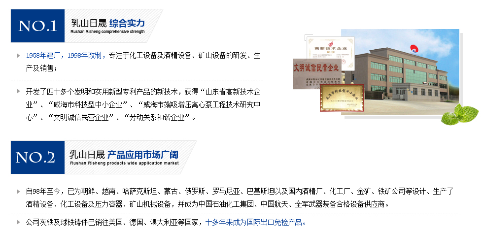 乳山市日晟機械制造有限公司位于山東省乳山市城區(qū)工業(yè)園日照路82號。公司地處膠東半島南端,東毗威海,北臨煙臺,西近青島,南瀕黃海,依山傍海,交通便利。公司于1958年建廠,原屬國家輕工部定點設備生產廠家,自1998年改制后,現(xiàn)有員工128人,其中工程技術人員26人,加工設備齊全,占地面積3萬平方米,是集鑄造生產、機械加...